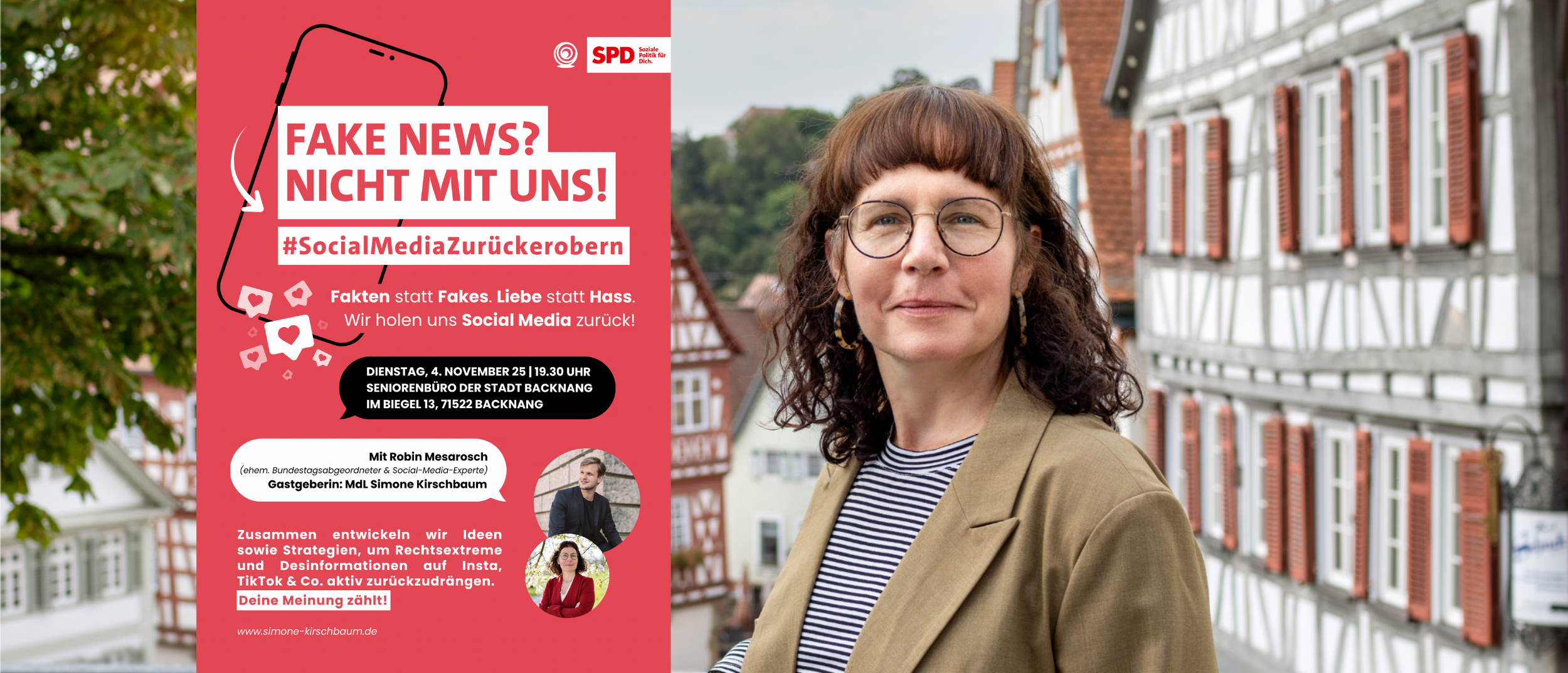 Seit Oktober 2024 als Landtagsabgeordnete auch für die Menschen in meinem Wahlkreis 17 Backnang, einem der drei Landtagswahlkreise im Rems-Murr-Kreis.